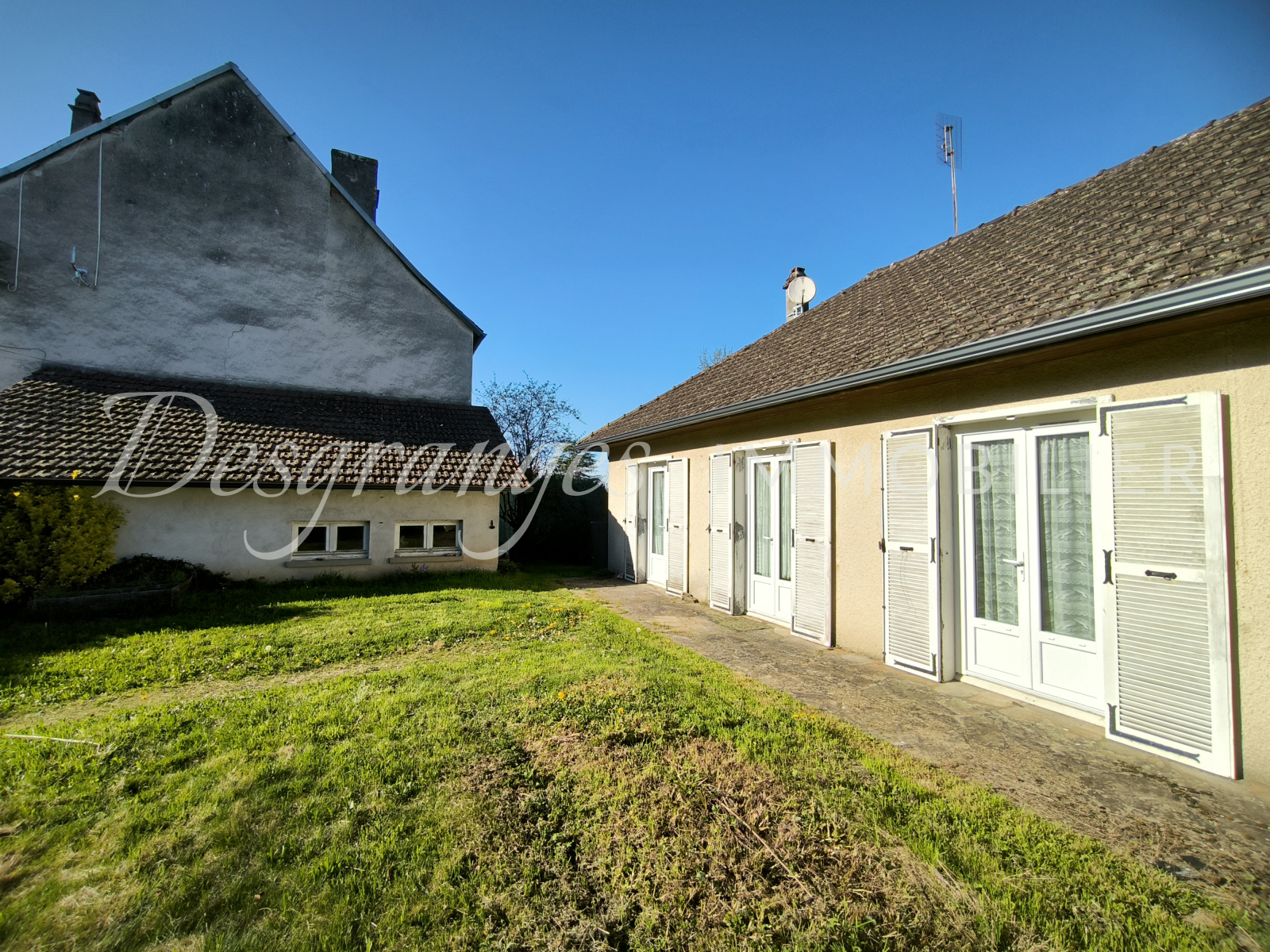 Sole Agent - A fairly recent single-storey house with its garden around, in the heart of the village of Payzac. All amenities within walking distance! 3 bedrooms, a study, a living room and a separate kitchen, all bathed in light and on one level! Recent double glazed windows, heating system and electrical installation. A detached garage with a small workshop area. Terrace to the rear with lovely unobstructed views over the countryside. The kitchen and bathroom need updating.